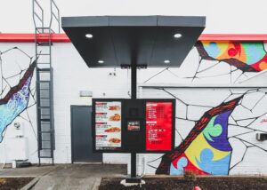 A complete turnkey drive-thru system with static and digital drive thru menu boards, an order point canopy, and brand-aligned accessories.